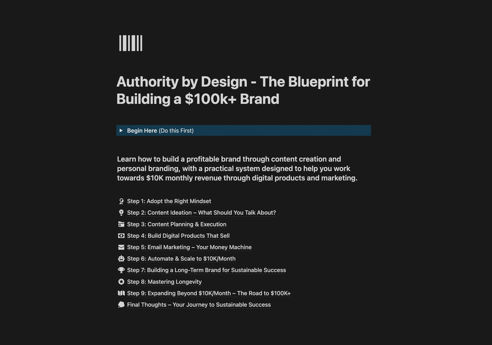 Struggling to turn content into cash? This proven system guides you step by step to $10K+ monthly revenue through content creation, digital products, and marketing.